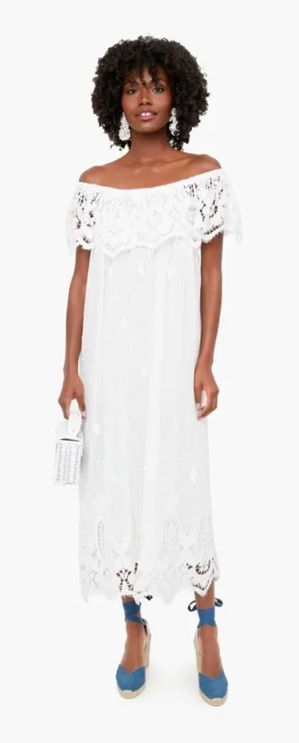 New with tags Size xs 47” length Inspired by the rolling vineyards and abundant florals of Provence, our latest collection combines classic shapes, textures and patterns with romantic and whimsical details. The perfect combination of romantic and bohemian, the Avalon is composed of soft white lace layered over a crisp white lining to create a dream worthy look. This off the shoulder midi grazes your collarbone in a graceful but sultry way that can only be achieved with such a delicate and feminine style. The perfect choice for everything from bridal showers to seaside dinners while on vacation, this dress styles well with statement earrings and simple sandals for an easy and envy worthy outfit. Off the shoulder neckline Lace overlay Lined Midi length Material: 100% Cotton Care: Machine wash cold, lay flat to dry Resort, resortwear, coastal, coastal grandma, coastal cowgirl, coastal grandpa, vacay, vacation, spring break, cruise, beach, ocean, spring, summer, airy, light, quiet luxury, quality, preppy, old money,