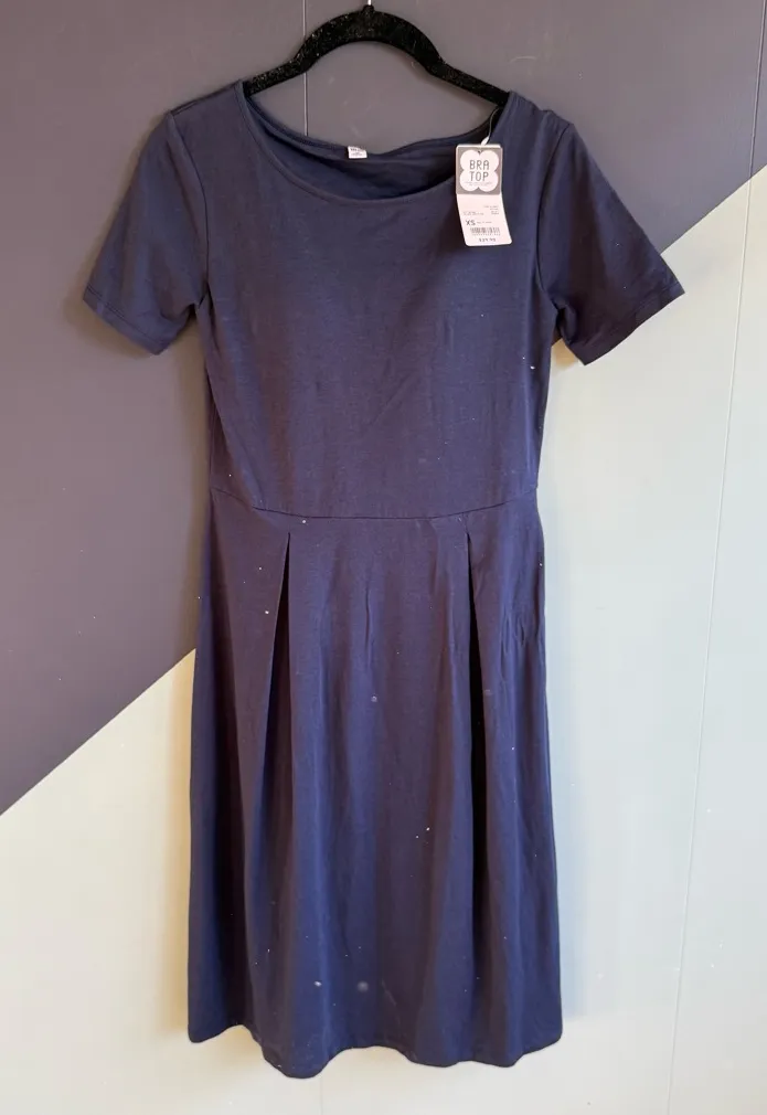 New with tags. Navy Blue. Size XS. T-shirt top with banded waist and pleated bottom. The top has a... Show more
