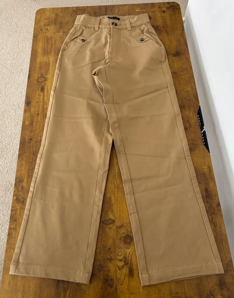 New with tag / Made in China 54% cotton 40% rayon 6% elastane / Machine washable 2023CSP499 2023CSP504 USPA1143B RN# 148596 Dog (Sheltie) friendly & smoke free home Elegant camel pants with straight leg design. Ideal for versatile styling. Comfortable fit for everyday wear. These NWT Universal Standard Women's Size 4XS (00-0 / XS) Camel Straight Leg Twill Pants are versatile and stylish for various occasions such as travel, casual outings, and workwear. Made from a comfortable cotton blend fabric with a mid-rise and flat front design, these pants feature a classic straight leg style with a stylish button accent. The pants also include pockets for added convenience and have a 28.5-inch inseam, making them suitable for the summer, fall, and spring seasons. Perfect for city dwellers looking for a feminine and preppy yet practical wardrobe staple.