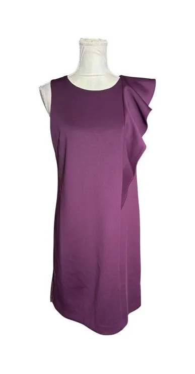 This elegant Vince Camuto dress in rich plum features a chic ruffle sleeve design. Ideal for profess... Show more