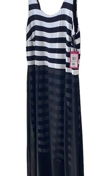 NWT 🖤🤍 VINCE CAMUTO SLEEVELESS STRETCH KNIT MAXI DRESS WITH SHEER CHIFFON OVERLAY SKIRT, BLACK & W... Show more
