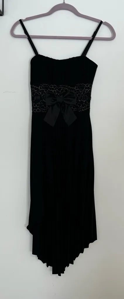 NWT Vintage Y2K Deb Black High Low Sleeveless Babydoll Bow Formal Dress Size Small Measurements (... Show more