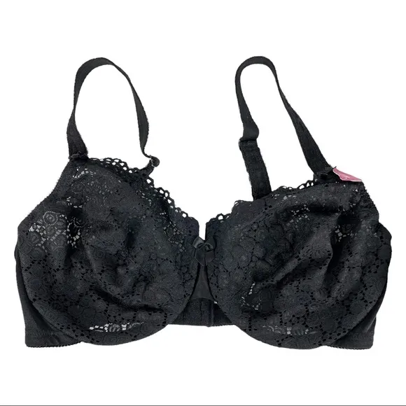 NWT Vanity Fair Full Figure Underwire Bra Sz 34D Brand New with Tags Attached Black Daisy Lace Full Figure Underwire Bra Y2K Boho Bohemian Western Chic Trendy Blogger Spring Summer Cottagecore Lagenlook Peasant Babydoll