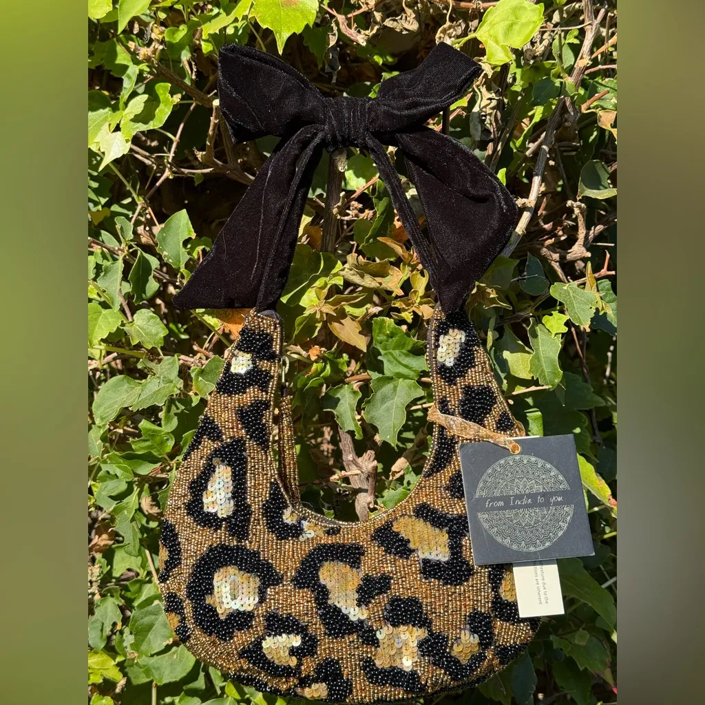 NWT Viral Leopard Cheetah Beaded Sequin Bag Black Velvet Bow Made in India New - $95 New With Tags - From Kareen