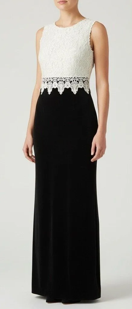 Step into timeless sophistication with this stunning vintage Scott McClintock gown, a truly unique piece that blends romantic lace detailing with a sleek, dramatic silhouette. The ivory lace bodice features delicate floral texture and a scalloped lace waistline that beautifully contrasts against the rich black velvet skirt, creating an elegant, figure-flattering look. Designed for formal evenings, weddings, or special occasions, this dress delivers classic Old Hollywood glamour with a refined, modern edge. The sleeveless cut and graceful neckline offer a polished finish, while the long velvet skirt drapes effortlessly for a luxurious feel. This dress still has its original tags, making it a standout find for collectors or anyone seeking a special, statement-making piece for their wardrobe. FEATURES Vintage Scott McClintock design Ivory lace bodice with scalloped lace waist detail Black velvet maxi skirt Sleeveless formal silhouette New with original tags Size: 10 Bust - 18" pit to pit Waist - 16" across Hips - 19.5" across Length - 56" shoulder to hem Measurements are taken flat and are approximate. Please compare with a similar item to ensure a good fit. Fabric Content - Acetate/Nylon Care - Dry clean Color appearance may vary depending on your monitor settings. All previously owned items have been cleaned and sanitized. Vintage, retro, Y2K, Evening, Wedding, Hoco, Dance, Prom