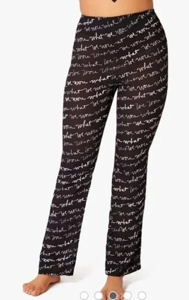 This is a pair of black semi-sheer smocked waist flared leg pull on pants from We Wore What. New with tags- no flaws Approximate measurements in photos. Size: Womens XS Condition: New With Tags
