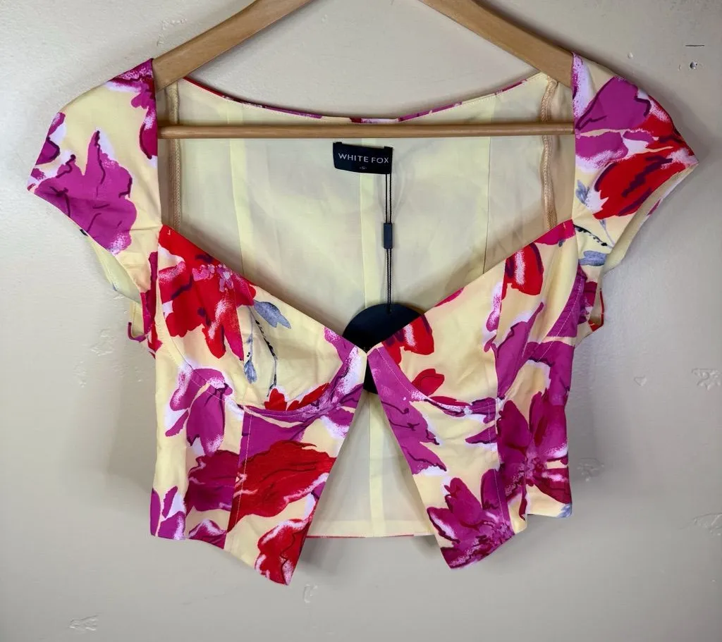 NWT White Fox Boutique Spring Fling Bustier Lemon Wildflower Top Size Small Y2K