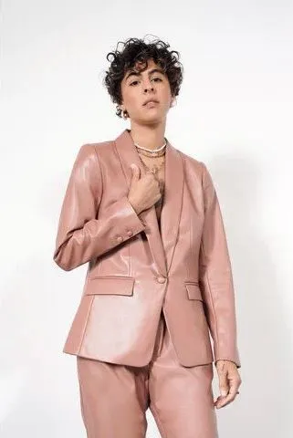 NWT Wildfang Empower Vegan Leather Tux Blazer Rose Brown Size Medium Career Pink - $143 New With Tags - From Olga