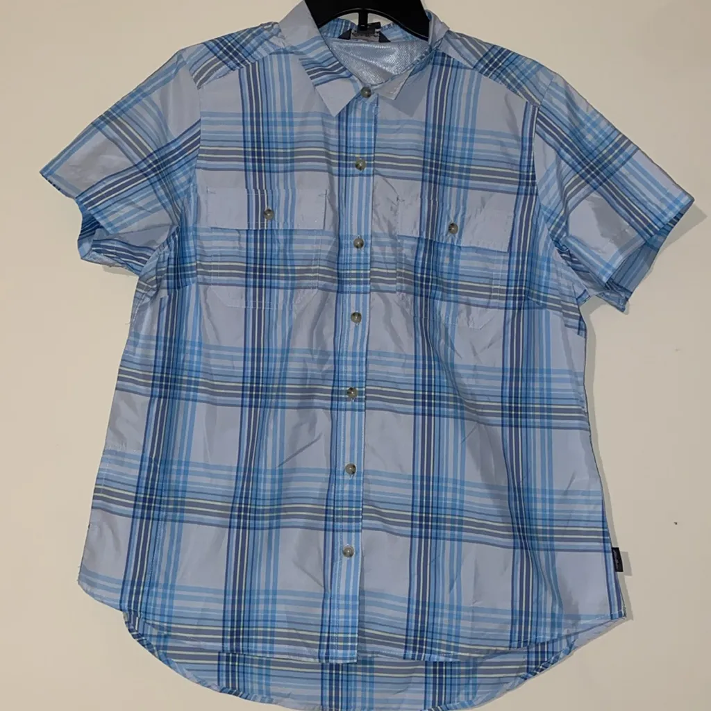 Women’s Eddie Bauer short sleeve adventure shirt Button down large Ancient Waters starling plaid... Show more