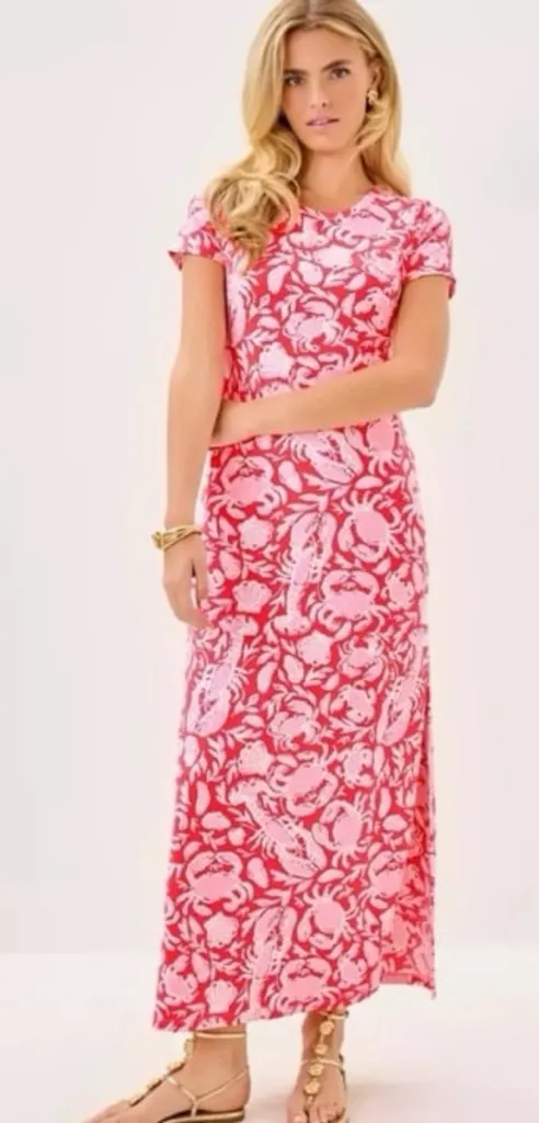 The NWT Women's Lilly Pulitzer KADEN UPF 50+ MAXI DRESS in the vibrant Cane Coral Crab Collab print... Show more