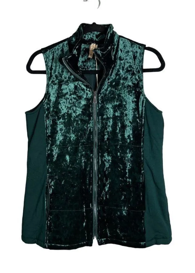 NWT XCVI Forest Green Full Zip Velvet‎ Velour Vest w/ Pockets Size Small - $38 New With Tags - From Stephanie