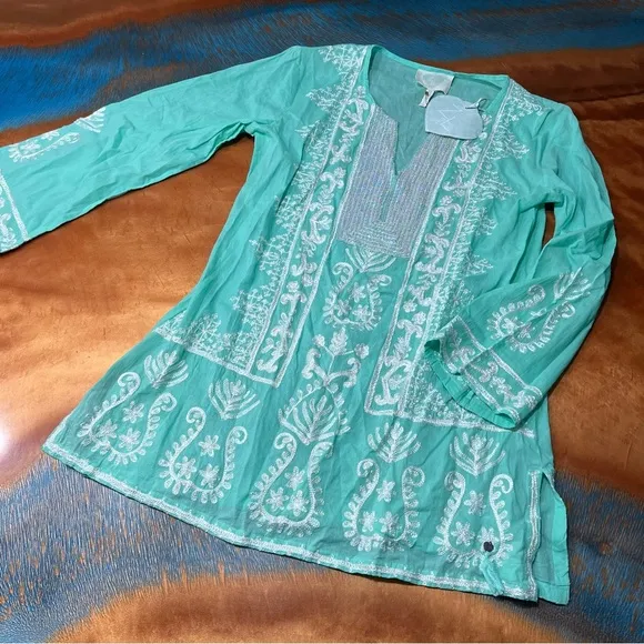 NWT Z & L Europe Embroidered Sequined Tunic top resort swim coverup White Size M - $39 New With Tags - From Magnolia