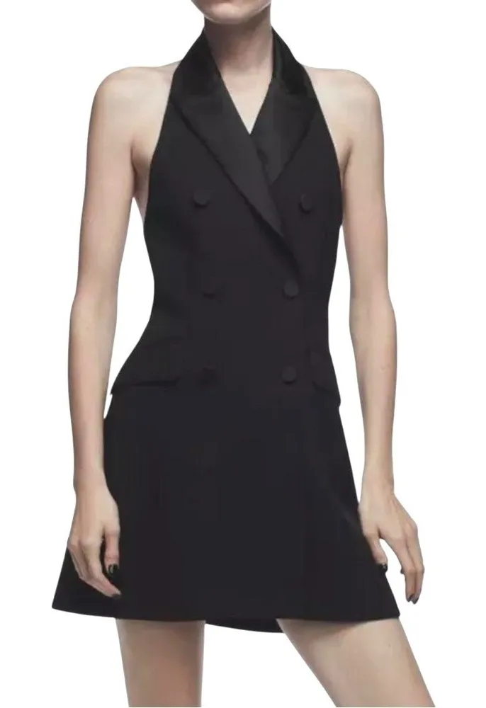 ZARA Limited Edition black tuxedo-style halter blazer dress with a sleek open back and double-breast... Show more