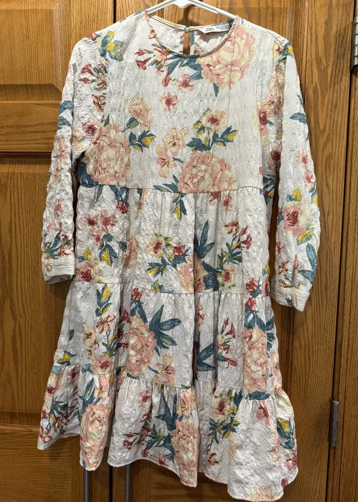 NWT ZARA Multi Color Floral Print Textured THE SHARON Tiered Baby Doll Dress sm Questions? Leave a c... Show more