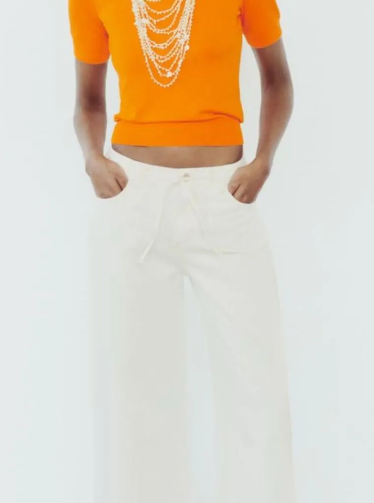 Stylish wide leg jeans. White color. Perfect for casual wear. High waisted