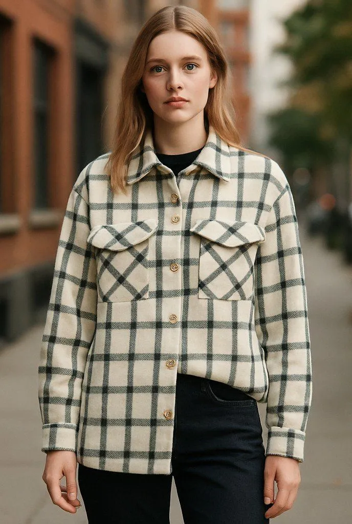 Zara Plaid overshirt pockets green, gray-black, and off-white. 92% cotton 6% polyester 2% other fib... Show more