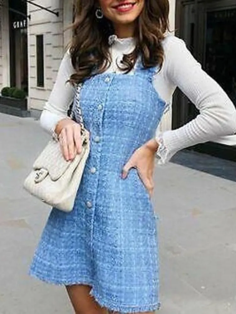Zara Sky Blue Tweed Dress with Crystal Buttons NWT Sz. XL Retails $90 NEW WITH TAGS! Measures: 34"L,... Show more