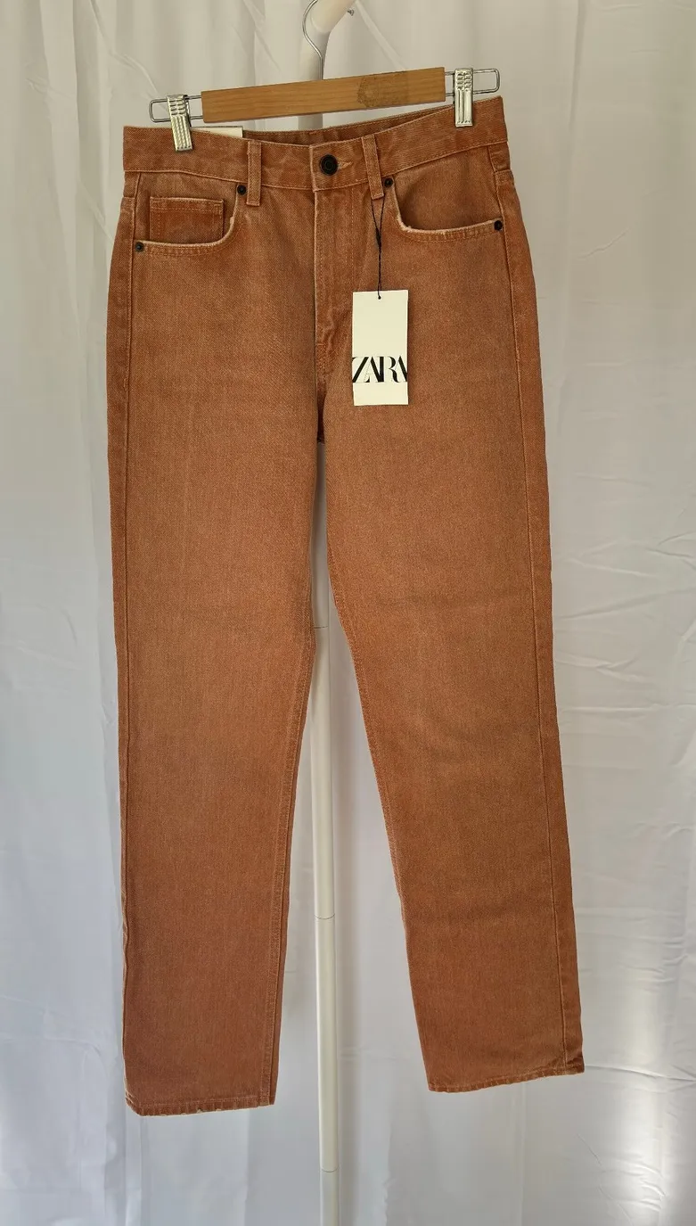 Keywords: ZARA jeans, straight leg jeans, orange jeans, women's denim, signature denim, new with tags, fashion jeans, casual wear, trendy jeans, designer denim, high rise jeans, modern fit, fall fashion, spring fashion, everyday wear