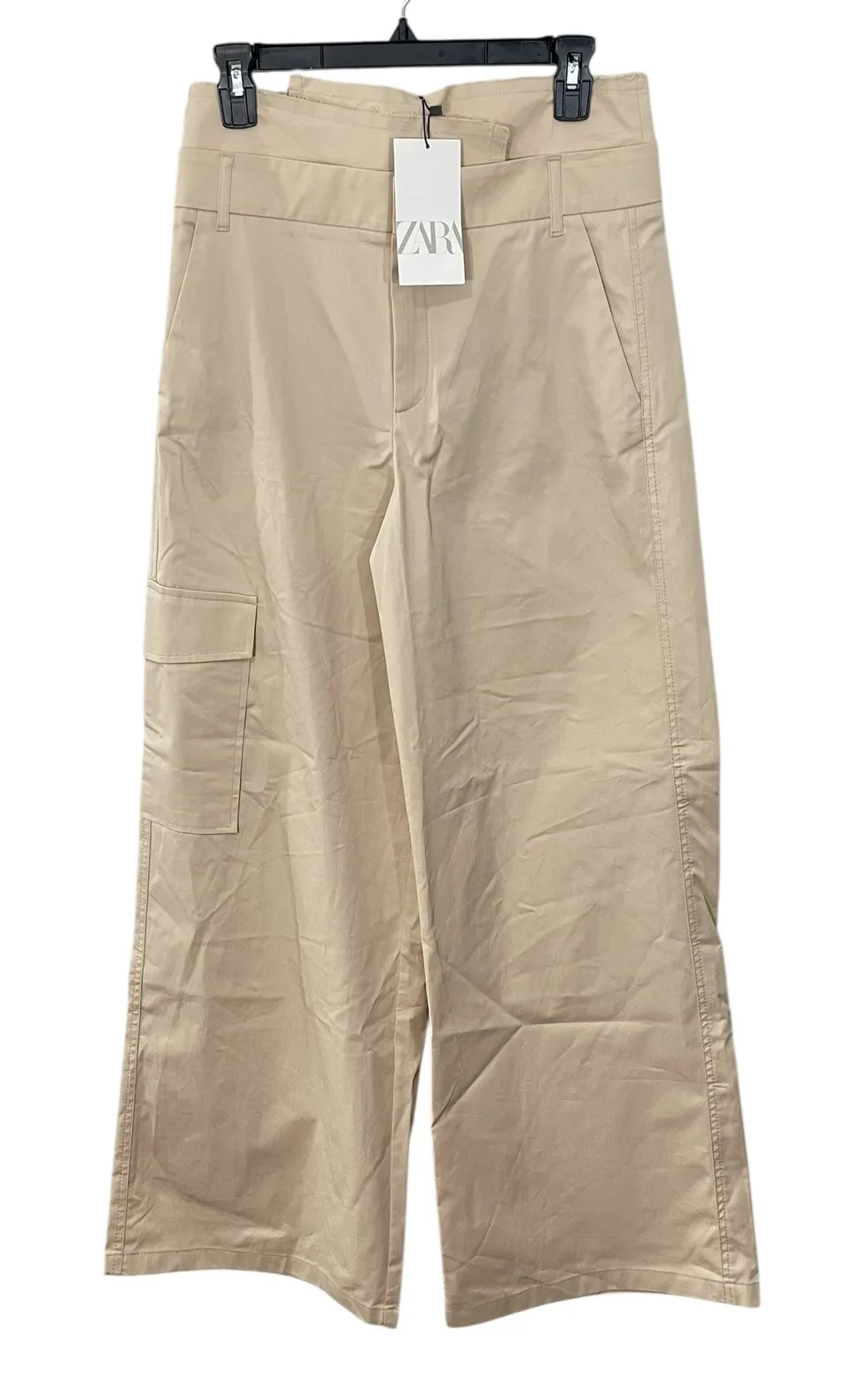 NWT Zara Wide Leg Pants Beige Cargo Raw Waist Hem Casual Trousers Size SMALL