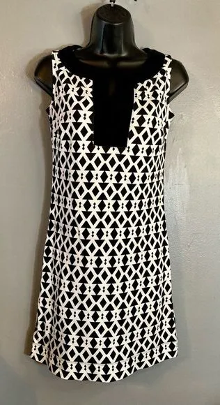 NY&CO black&white sleeveless dress size : xs mannequin is an adult size- small/medium approximate measurements laying flat ; pit to pit : 16 inches shoulders to bottom : 33 inches material content : 100% cotton thick stretchy material excellent condition ships next business day colors might be different depending on your device nwot smoke free/pet friendly home items are shaved, steamed and/or washed as needed reasonable offers are welcome