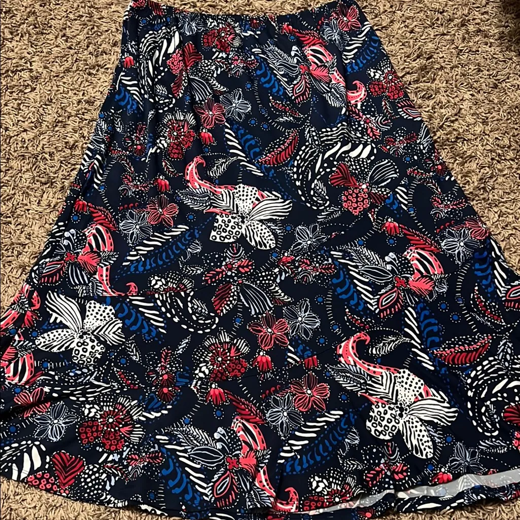 This NY Collection skirt showcases a striking blue and red color scheme, perfect for resort wear. Th... Show more