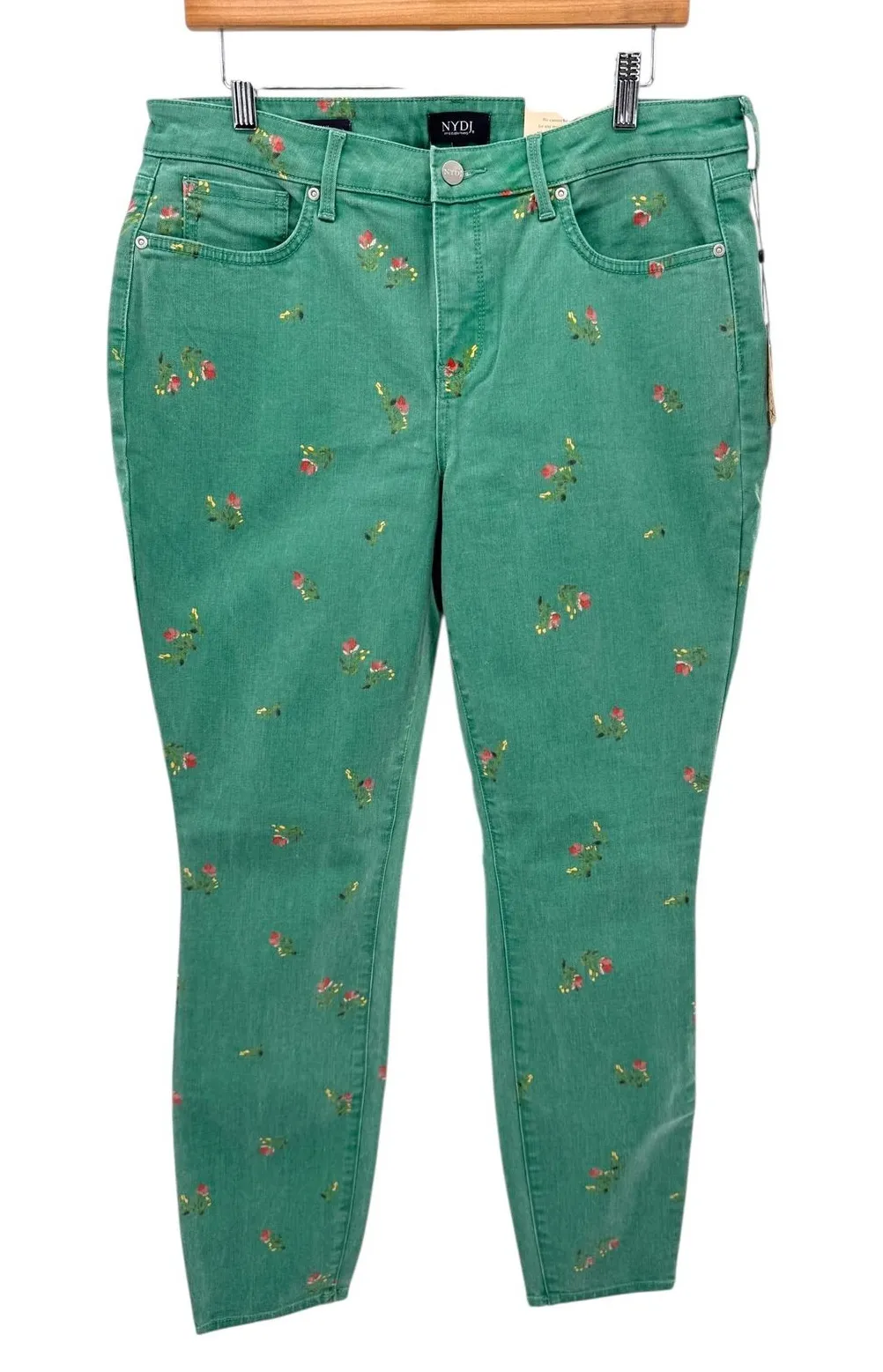 Freshen up your wardrobe with these NYDJ Ami Skinny Jeans in the Native Florals green twill. These jeans feature NYDJ's signature Lift Tuck® Technology for a smoothing, flattering fit and a comfortable mid-rise. The allover rose floral print adds a soft, feminine touch while still being wearable and easy to style. Soft, stretchy, and slimming — perfect for casual outfits, layering with sweaters, tees, or denim jackets. Condition: NWT – No flaws noted Size: 12 Color: Green with multicolor floral print Style: Ami Skinny Fabric: Soft stretch cotton blend Features: • Lift Tuck® Technology • Skinny leg • Floral print • Five-pocket style • Zip & button closure Measurements (flat, approx.): • Waist: 34" • Rise: 11" • Inseam: 30" NYDJ jeans Ami Skinny Lift Tuck Technology Green floral jeans Printed denim NYDJ size 12 Stretch skinny jeans Women's twill jeans Spring floral jeans Garden print denim High rise jeans Comfort stretch Boutique denim