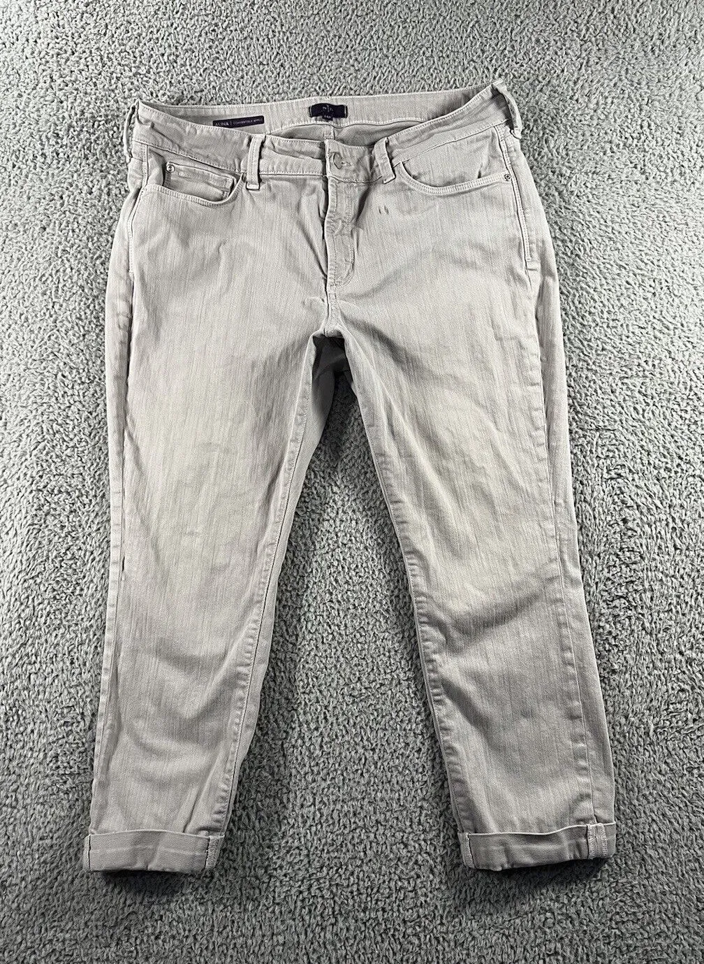Preowned. PLEASE NOTICE SPOT ON BACK RIGHT LEG NEAR THE BOTTOM , PUCKERING/RIMPLE AREA ON FRONT OF J... Show more