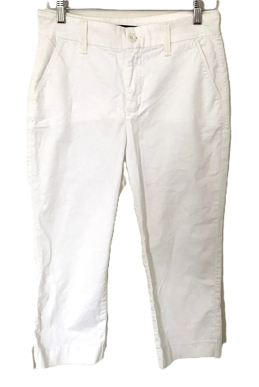 Crisp white cropped chino pants from NYDJ featuring Lift Tuck® slimming panel in a cotton blend stretch fabric. Straight crop cut sits above ankle. Ideal for pairing with flats or heels, perfect for office or casual wear. *Product colors may vary slightly due to lighting in photos or individual monitor settings. Pet-friendly and smoke-free home. I do my best to describe items accurately, please refer to all photos and details provided. Items may need to be cleaned, ironed, or pressed due to storage. Tags: white, crop, chino, straightcrop, lifttuck, cottonblend, NYDJ, pantalones, officecore, springstyle, casualchic, crisplook, classic, versatile, summerpants
