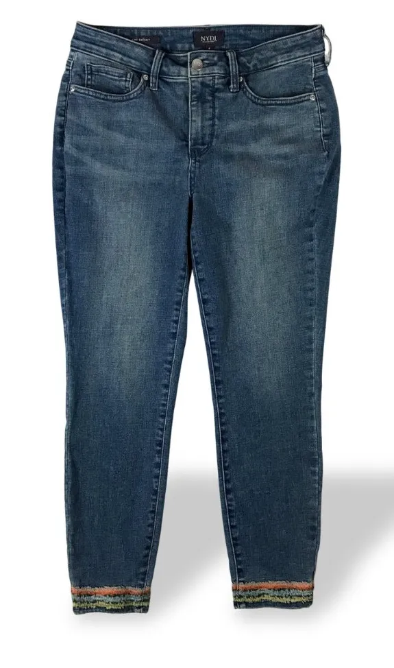 NYDJ Women's Ami Skinny Ankle Jeans with embroidered hem 4 Blue - $18 - From TJs