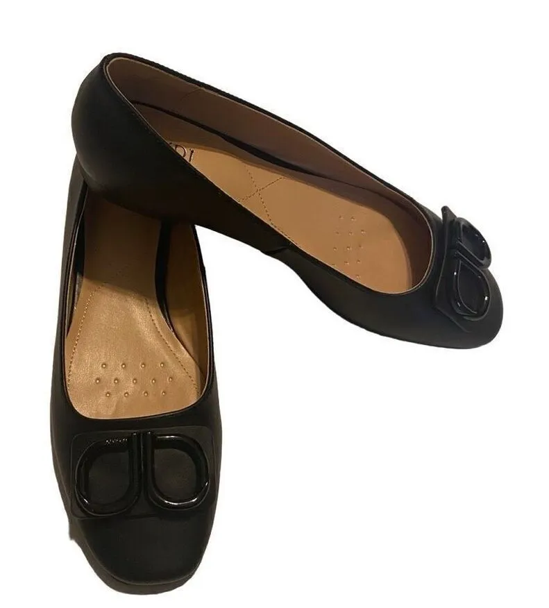 BRAND: NYDJ COLOR: Black CONDITION: New Open Box, Have been “tried on” at the store SIZE: 6.5 MEASUREMENTS: See Pictures MATERIALS: Nappa Leather OTHER DETAILS: Cushion Memory Foam Insoles Metal Bit on Vamp Partially Recycled Rubber Outsole Nappa Leather Upper Man made Lining Ballet Flats Please see approximate measurements in pictures before purchasing. Use your own judgment as to the fit.