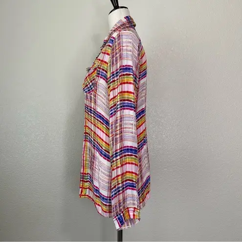 Size: Small Colorful Plaid - Front Button Down closure - Collared Neckline - Two Chest Flap Pockets... Show more