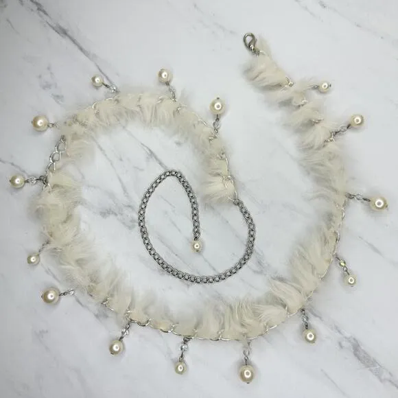 Beaded Faux Fur Woven Silver Tone Chain Link Belt ✨ 📏 Size: One Size (OS) 🤍 Color: Silver tone wi... Show more