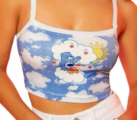 Features: Ribbed Graphic Prints Spaghetti Straps Cropped Fabric: Polyester / Elastane Measurement... Show more