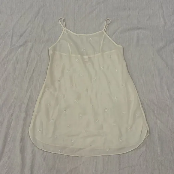 Cream floral embroidered sheer vintage Gilligan & O’Malley babydoll cami sleep top/slip. Such a cute... Show more