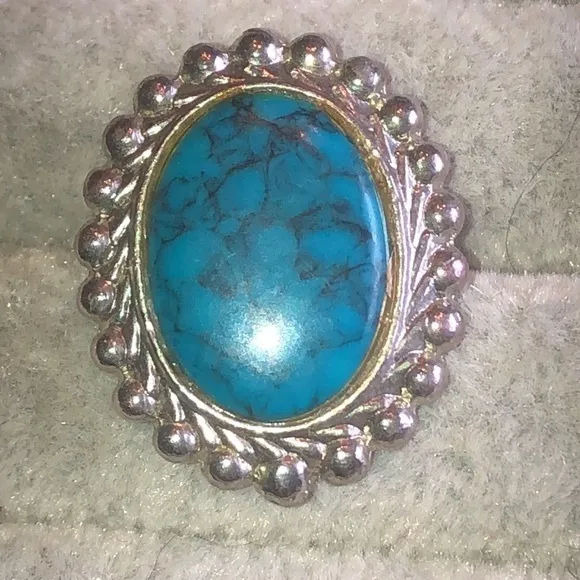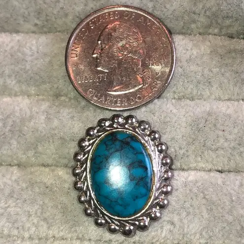 Adjustable Vintage Silver Tone Faux Turquoise Oval Shape Boho Ring Blue - $18 (25% Off Retail) - From Vault