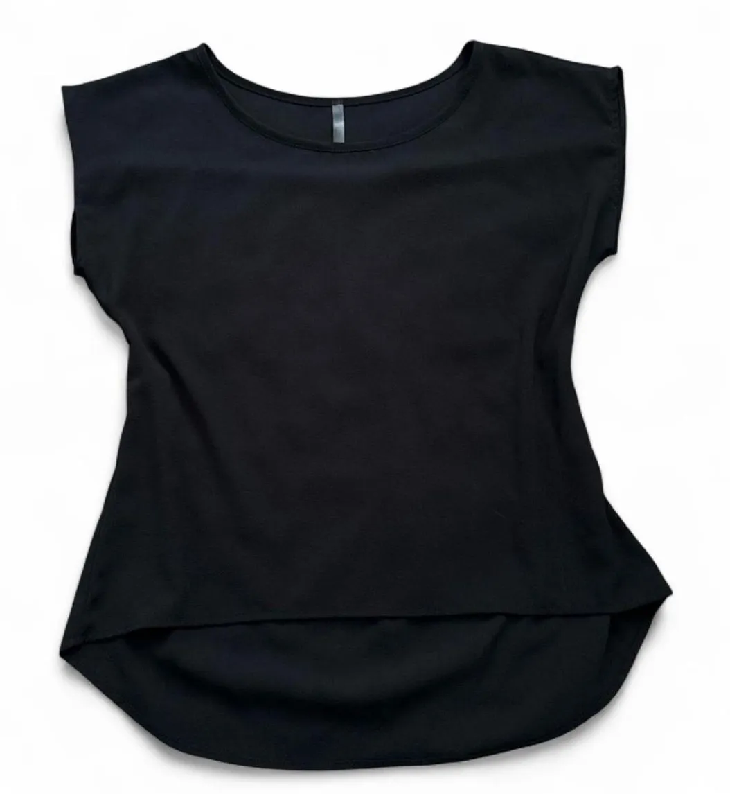 • Elevate your wardrobe with this chic black short sleeve blouse. Perfect for versatile styling and all-day comfort. - Good Condition / Lightly Worn - Size Small - Loose Fit - Hi-Low - Small Snag Under Right Armpit (As Pictured) - Pleated Back - 100% Polyester - Top To Bottom: 22 Inches Side To Side: 21 Inches • Elevate your wardrobe with this chic black short sleeve blouse. Perfect for versatile styling and all-day comfort. - Good Condition / Lightly Worn - Size Small - Loose Fit - Hi-Low - Small Snag Under Right Armpit (As Pictured) - Pleated Back - 100% Polyester - Top To Bottom: 22 Inches Side To Side: 21 Inches