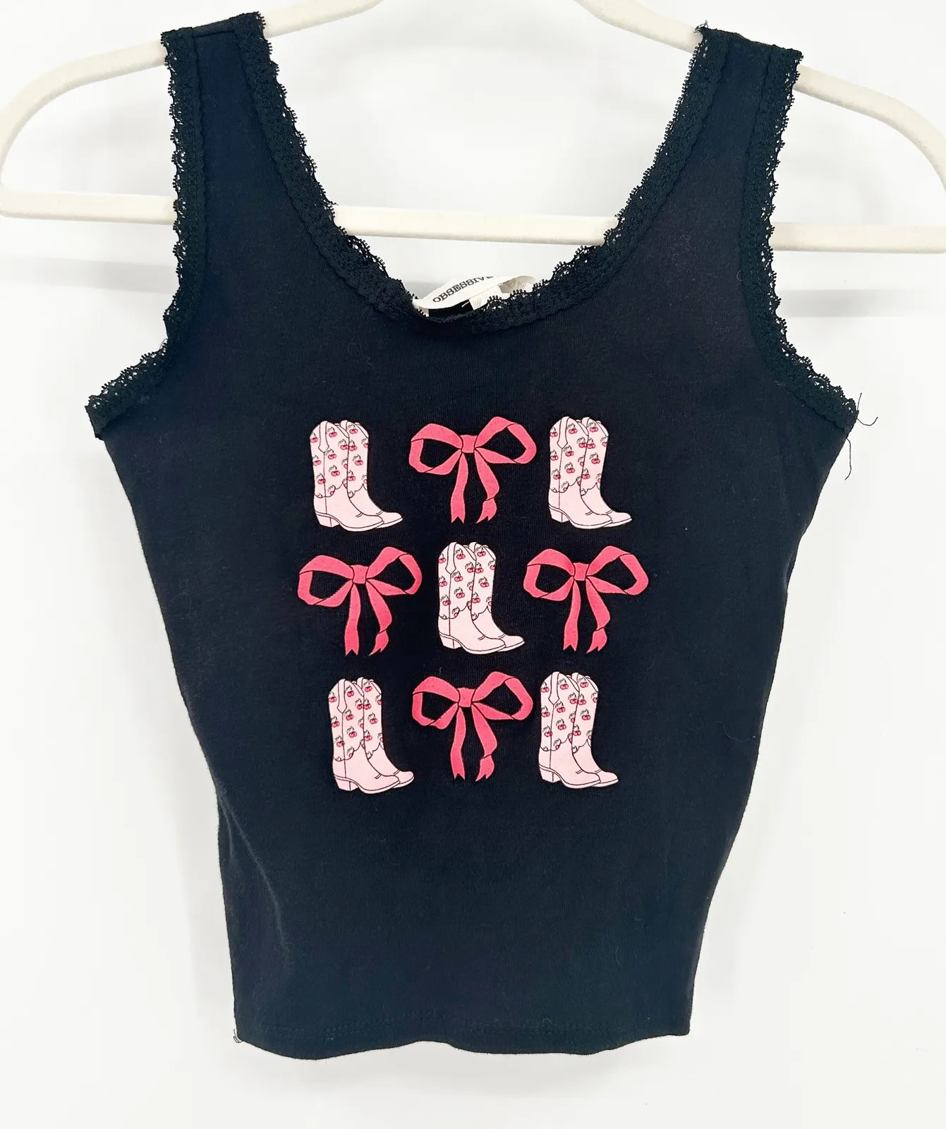 Obsessive Love Western Coquette Cowgirl Cowboy Boots Bows Graphic Tank in Black and Pink. Size small... Show more