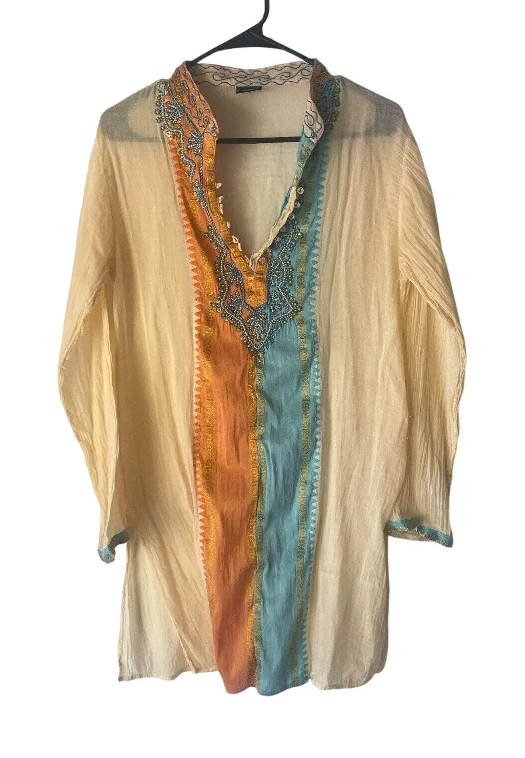Occhi Blu‎ Women's L/XL Sheer Beaded India Orange Blue Celestial Gypsy Tunic Top - $20 - From Mikayla