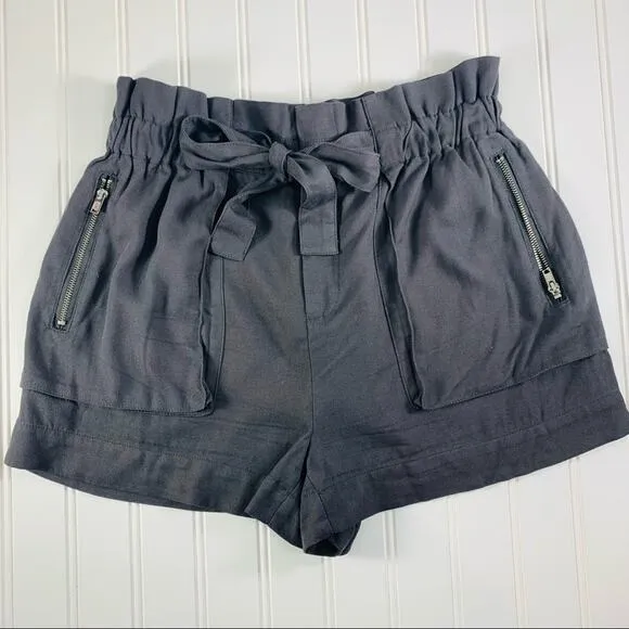 Gray High Waist Paper Bag Shorts Sz Small Cargo pockets with exposed zipper Measurements laying... Show more