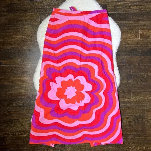 Preowned / used skirt from Zara. Fun 70s retro psychedelic floral swirl print. Pink, red, and purple... Show more