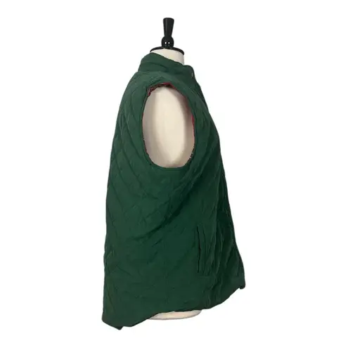 Style Details • Quilted winter vest • High collar • Snap front closure • Side pockets • Reversible • Solid fern green • Classic red plaid • Winter weight, warm • Cotton & polyester • Machine washable • Excellent used condition Fit & Measurements • Size 2XL • 25” across underarms • 29” length from shoulder to hem • Measurements taken across laying flat Winter outdoors hiking plus size curvy preppy outdoorsy casual modest holiday camping