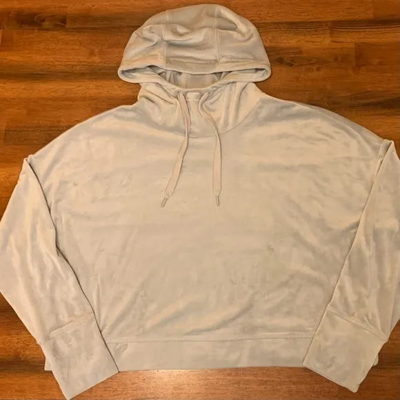 This Aerie hoodie in a soft gray hue features a stylish cropped design and a cozy hood with a drawst... Show more