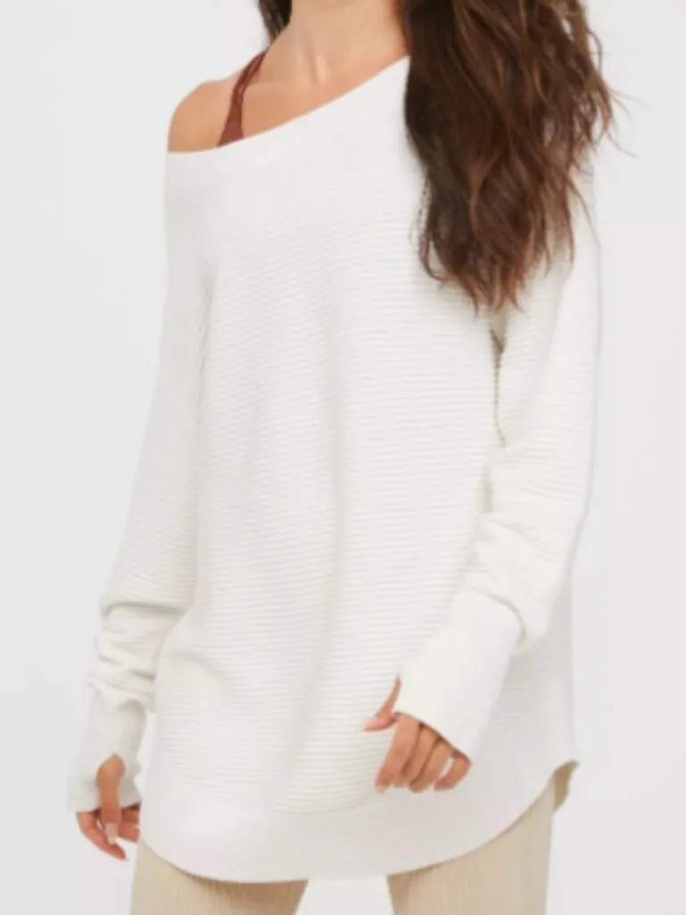 OFFLINE by Aerie Home Stretch Sweater Size Large White Boatneck Off The Shoulder - $46 - From susie