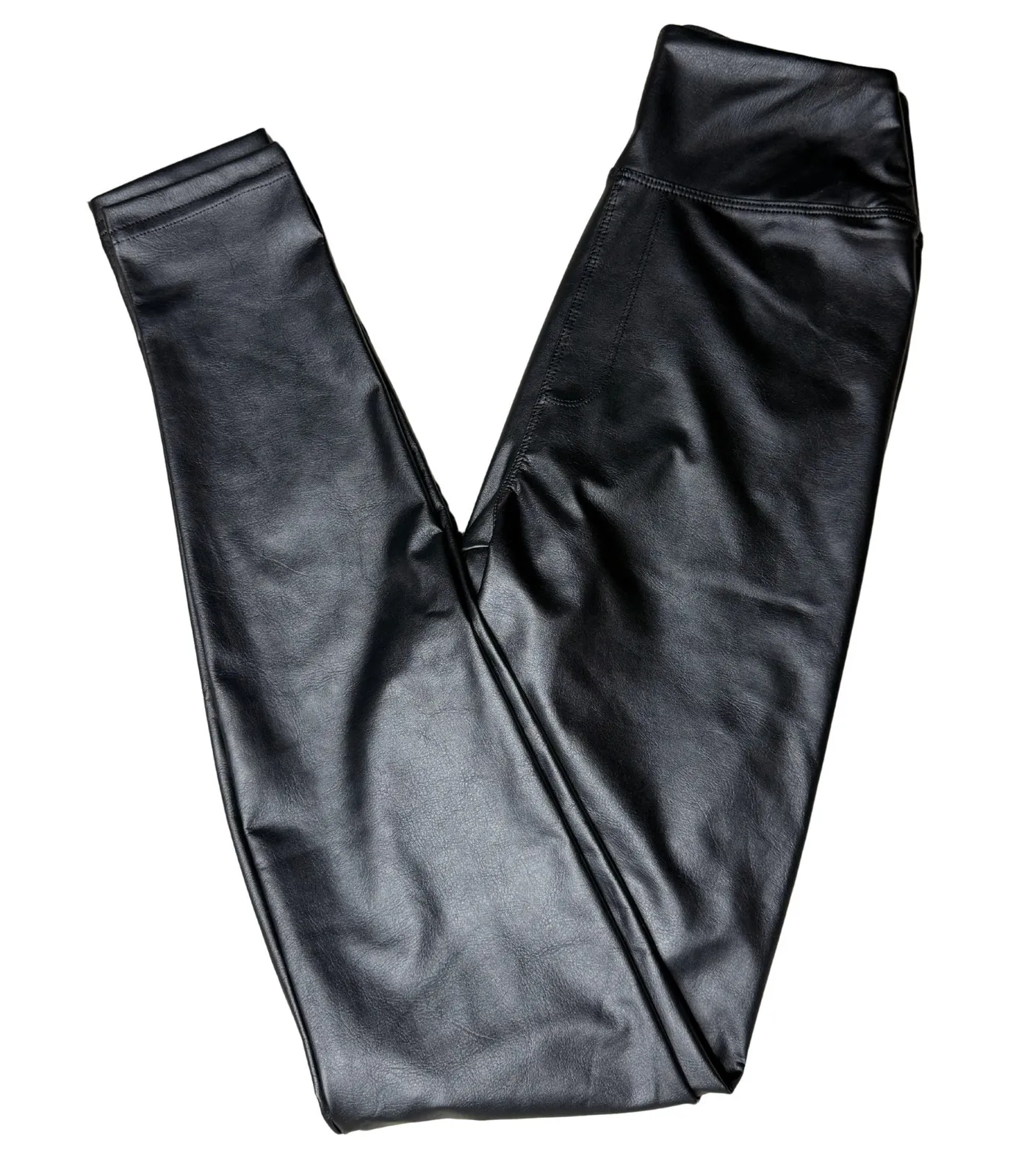 • Features: hi rise, high waisted, faux leather coating, stretchy, smooth, full length, buttery soft, pull on