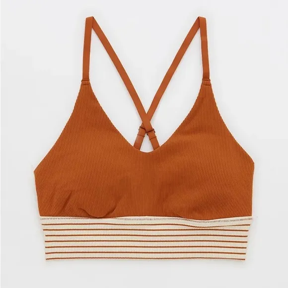 OFFLINE By Aerie Ribbed Scoop Sports Bra Caramel NWT size XS Get your game on in ultra-soft ribbed... Show more
