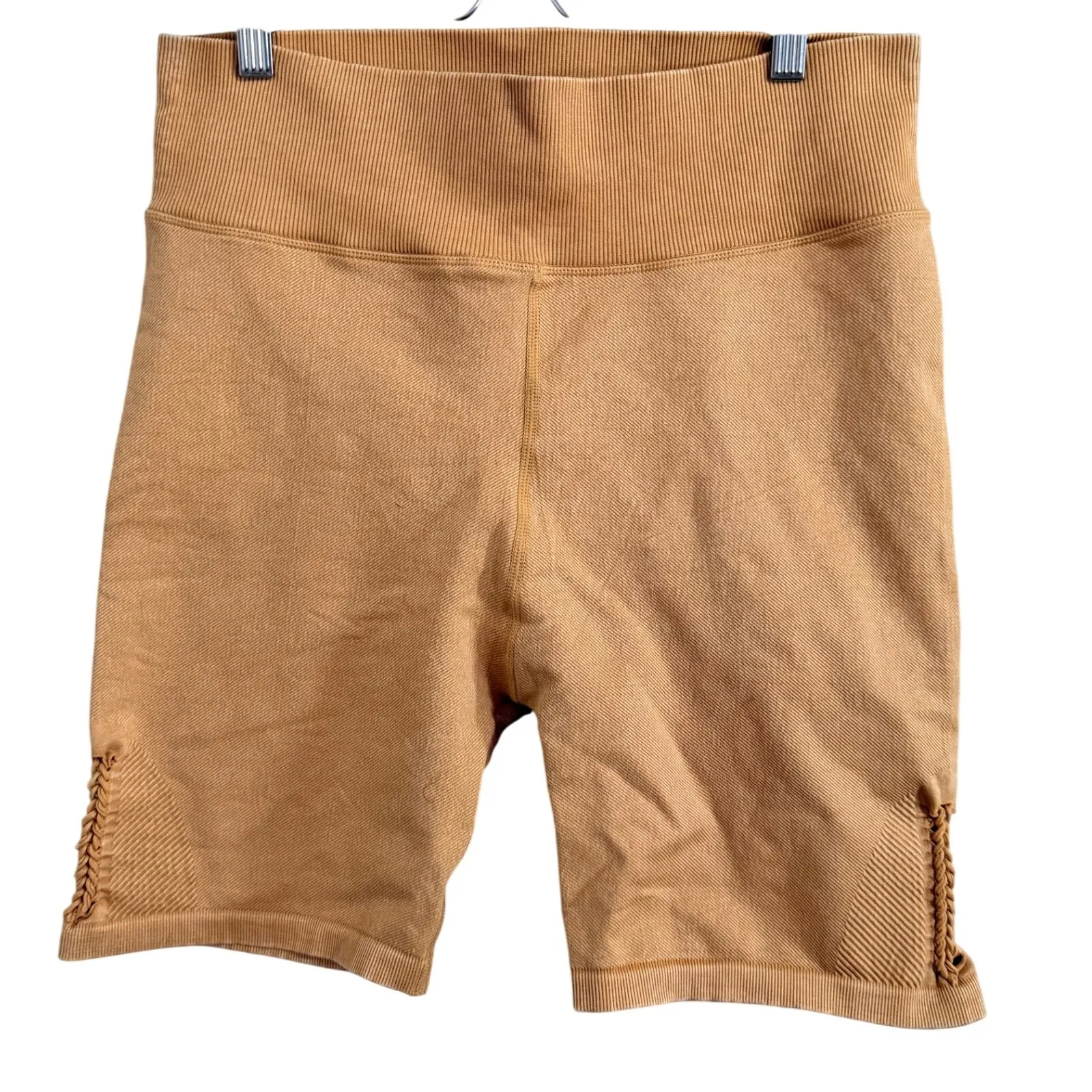 Elevate your activewear with these Offline by Aerie seamless bike shorts. The rich camel hue complements any workout ensemble, while the ribbed texture adds a touch of sophisticated style. Designed for ultimate comfort and performance, these shorts feature a flattering high-rise waistband and a supportive fit that moves with you. Intricate braided detailing along the hem adds a unique, eye-catching element. Perfect for yoga sessions, gym workouts, or casual athleisure looks. Department: Women Style: Biker Performance/Activity: Gym & Training, Yoga Fit: Athletic Material: Spandex Fabric Type: Blended Fabric Features: Stretch, Moisture Wicking, Shaping, Comfort Pattern: Solid Occasion: Activewear, Casual Keywords: Aerie, bike shorts, ribbed, seamless, athletic, workout, yoga, athleisure, high rise, camel, braided hem, comfortable, supportive, active lifestyle
