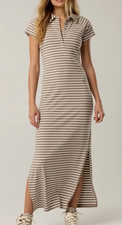 OFFLINE By Aerie Thumbs Up Heavyweight Polo Maxi Dress Size Large Ribbed Striped Brown - $56 - From susie