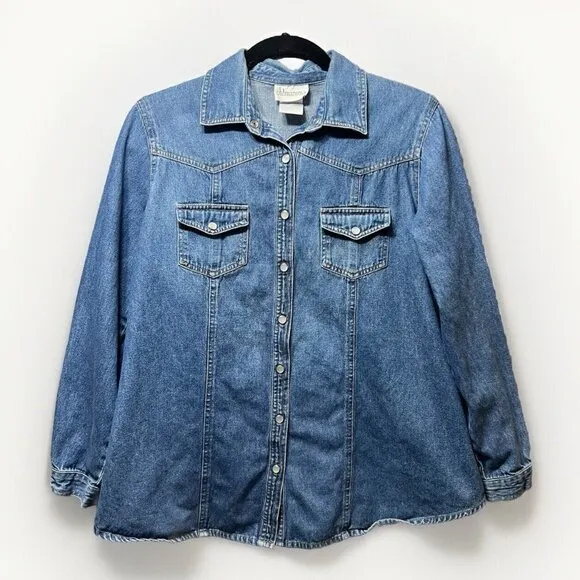Oh Mamma Maternity‎ Small Denim Blouse Pearl Snaps Long Sleeve Y2k 90s Vintage Blue Size undefined - $25 - From Christina