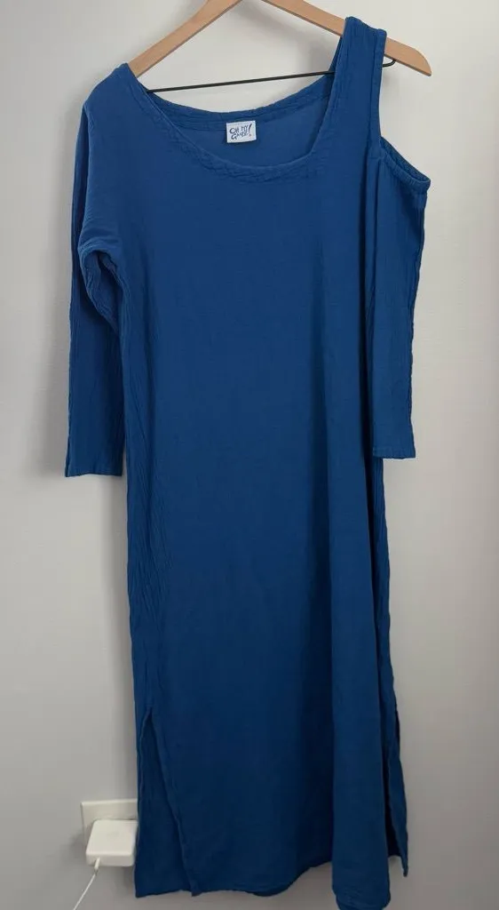 Oh My Gauze 1 Small Medium Paulene Midi Dress Cold Shoulder Royal Blue Lagenlook - $30 - From Most