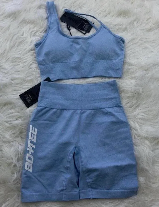 Asymmetric sports bra top with removable padding Seamless biker shorts Brand new never worn Size sma... Show more
